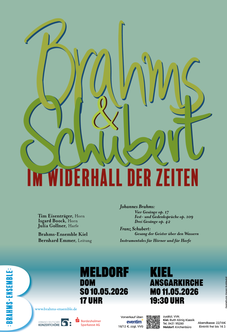 Das Brahms-Ensemble Kiel bringt vielstimmige Werke von Brahms und Schubert für gemischten, Frauen- und Männerchor zum Klingen